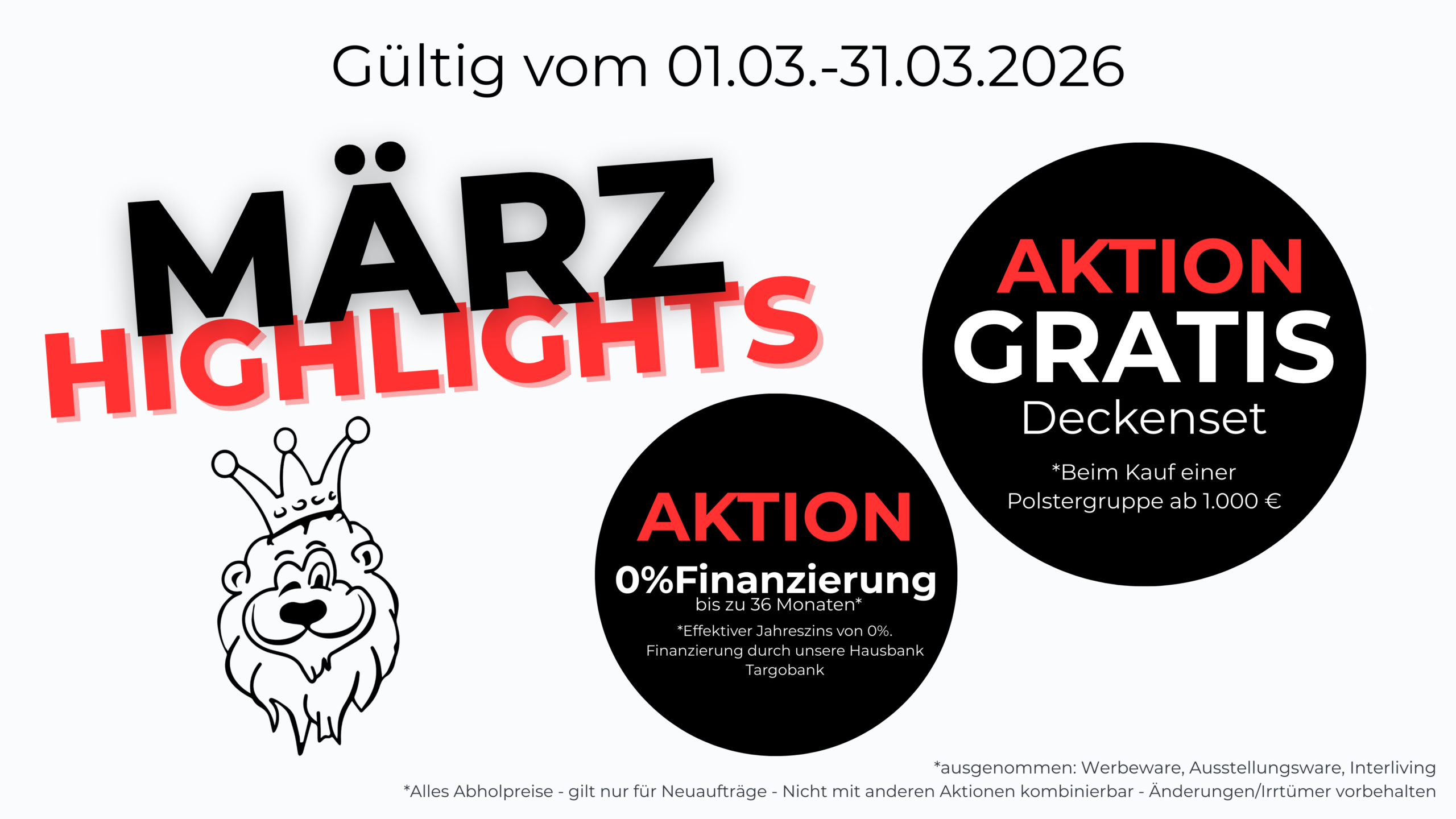 Wir gestalten regelmäßig spannende Events und Aktionen, die dir neue Inspiration rund ums Wohnen bieten. Ob besondere Verkaufstage, Themenaktionen oder einfach Gelegenheiten zum gemeinsamen Erleben – bei uns gibt es immer etwas Neues zu entdecken.