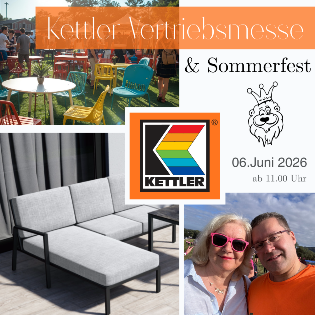 Am 6. Juni 2026 ab 11 Uhr laden wir dich herzlich zur großen Kettler Vertriebsmesse & Sommerfest bei Möbel Homann in Braunschweig ein. Freue dich auf eine sommerliche Atmosphäre mit farbenfrohen Gartenmöbeln, modernen Outdoor-Lounges und vielen Inspirationen für Terrasse und Balkon.